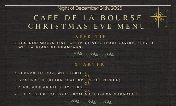 It’s time ! Discover our Christmas menus and come celebrate one of the most magical night of the year in Café de la Bourse the 24th of December.
